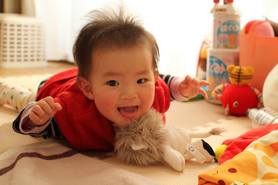 ずりばい中にちょっとだけ膝で支える事が出てきた。ハイハイするかな~?
